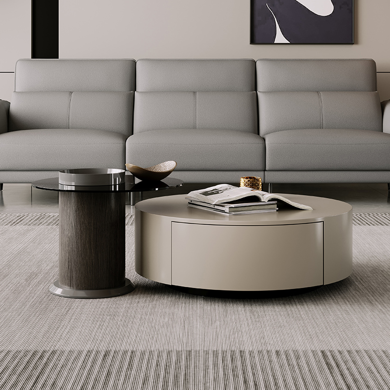 Circle Wood & Glass Coffee Table Nesting Coffee Table Set BSTJB124-1A