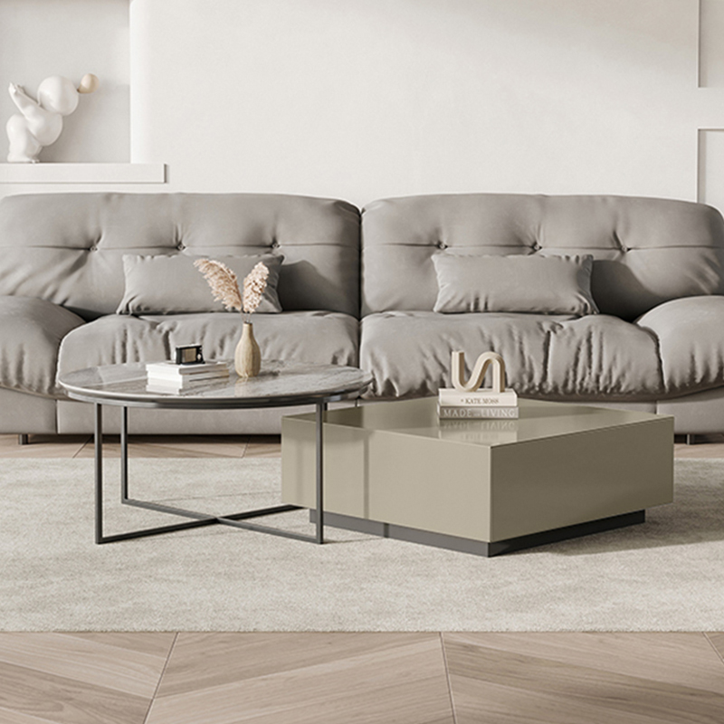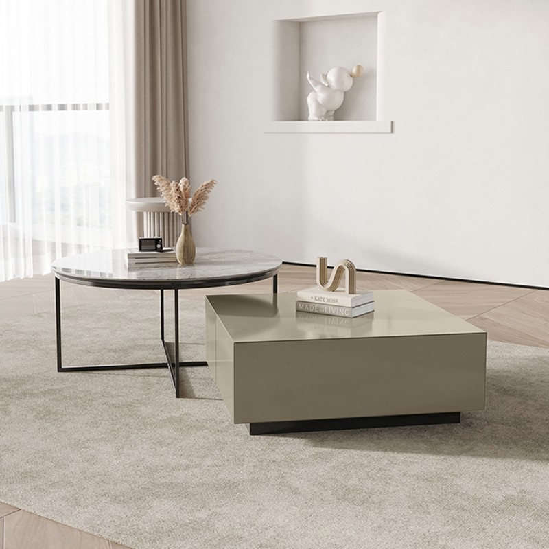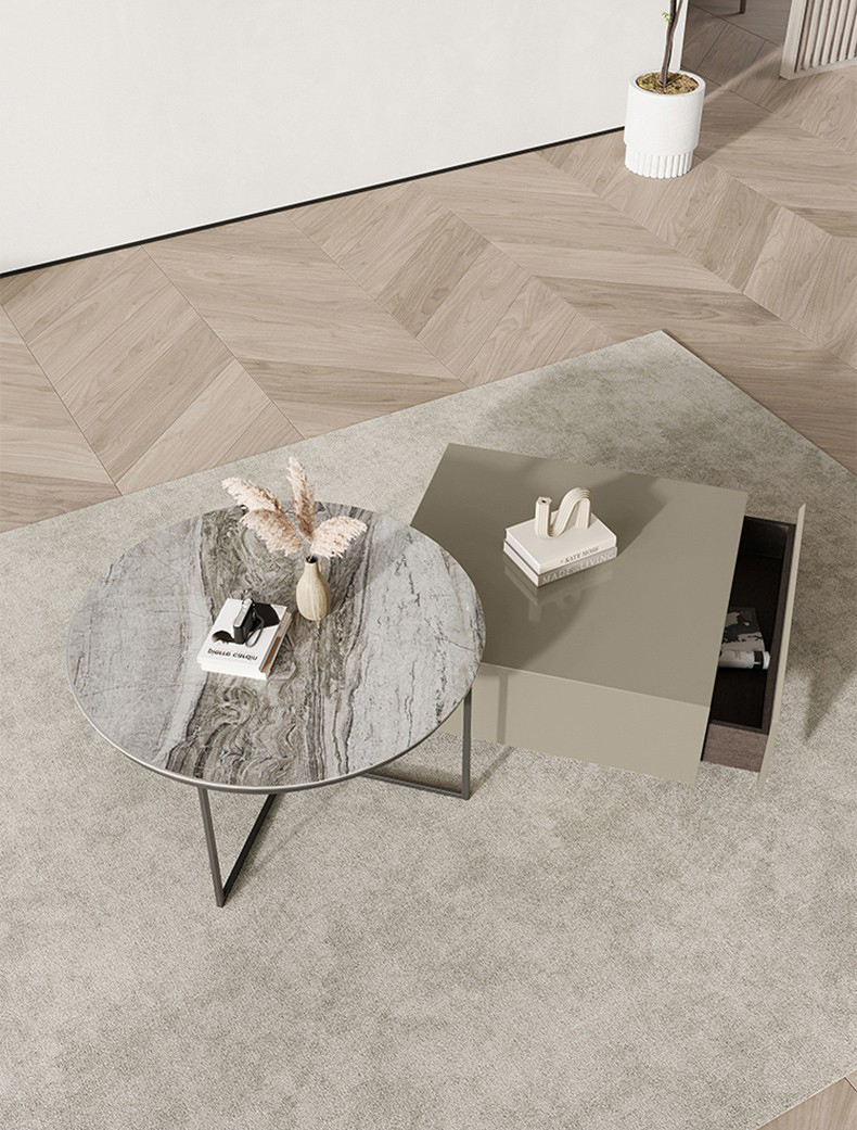 Square Wood Tops & Circle Sintered Stone Coffee Table Set BSTJB124A