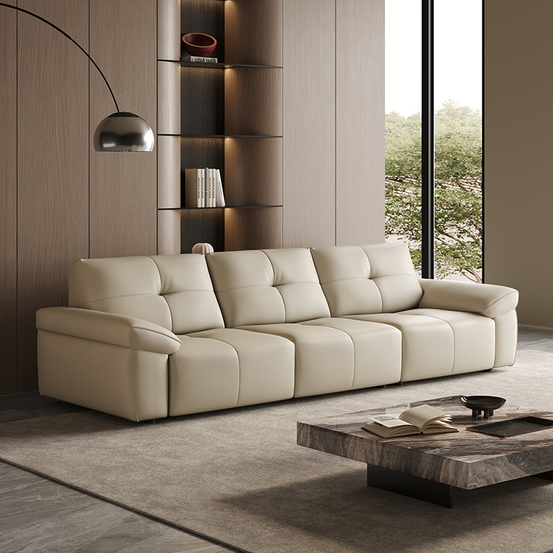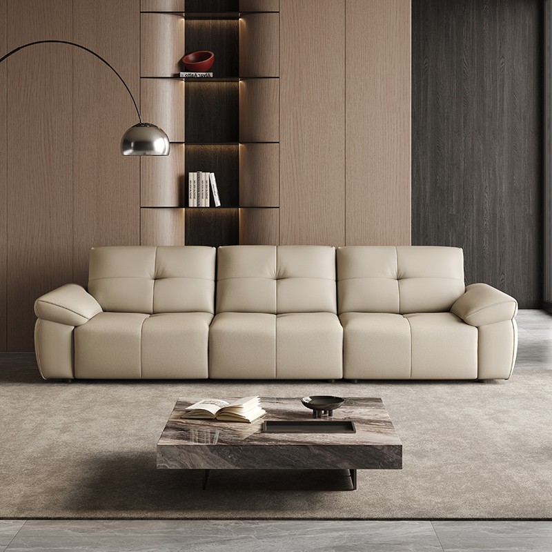 Modern Beige Leather Lounge Sofa for Three BSTJS3123