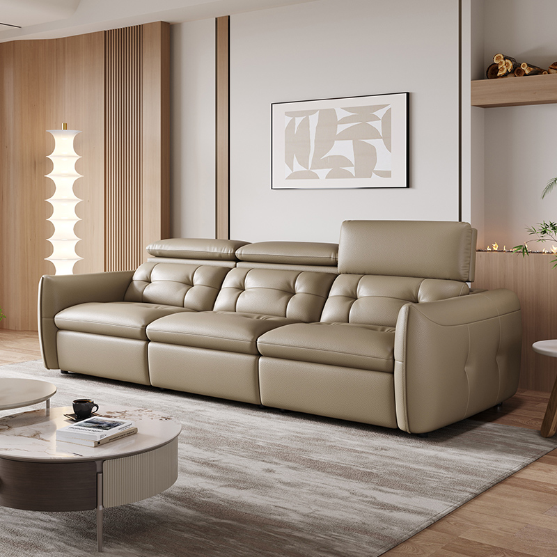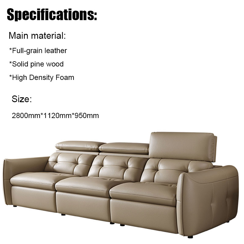 Leather Sofa with Adjustable Headrest and Pine Frame BSTJS3221