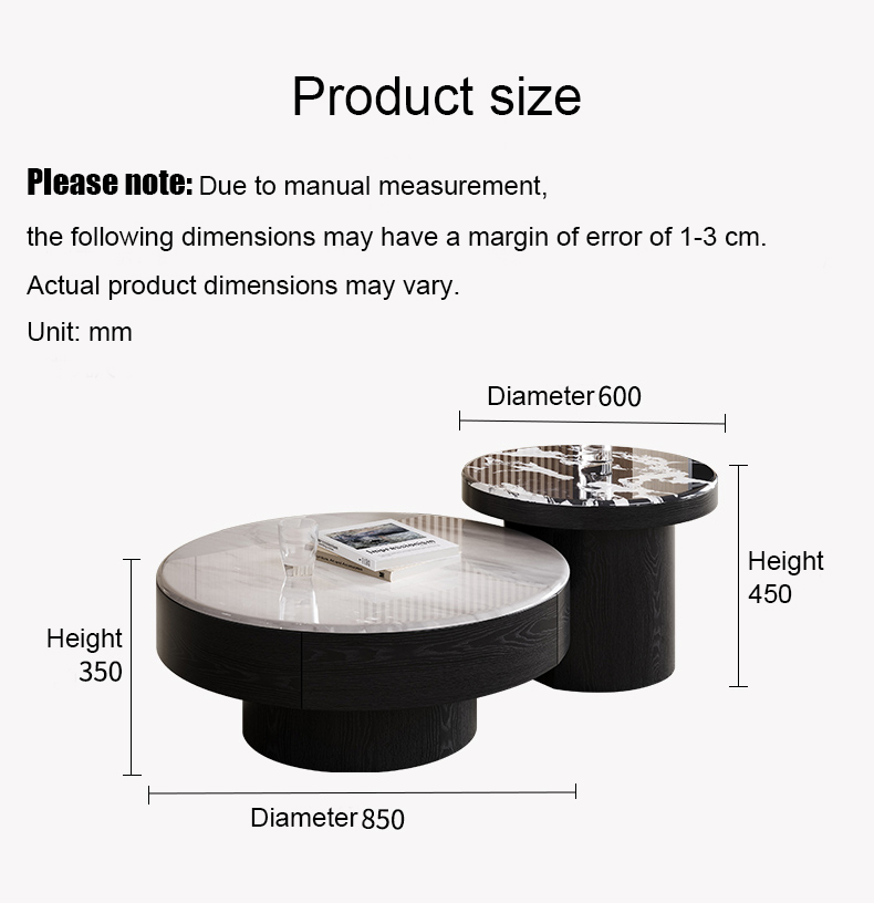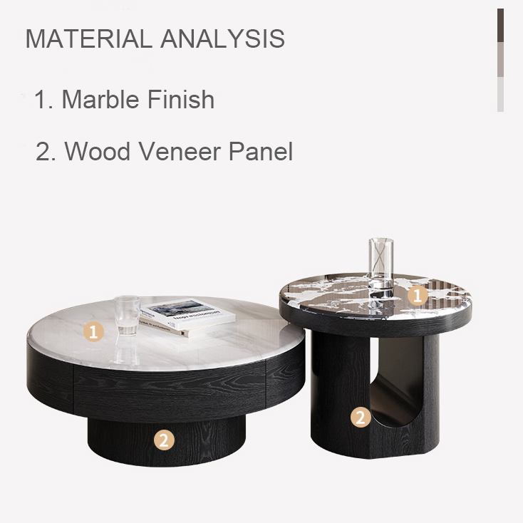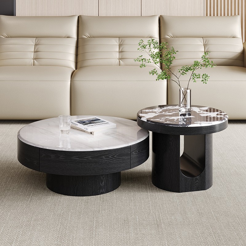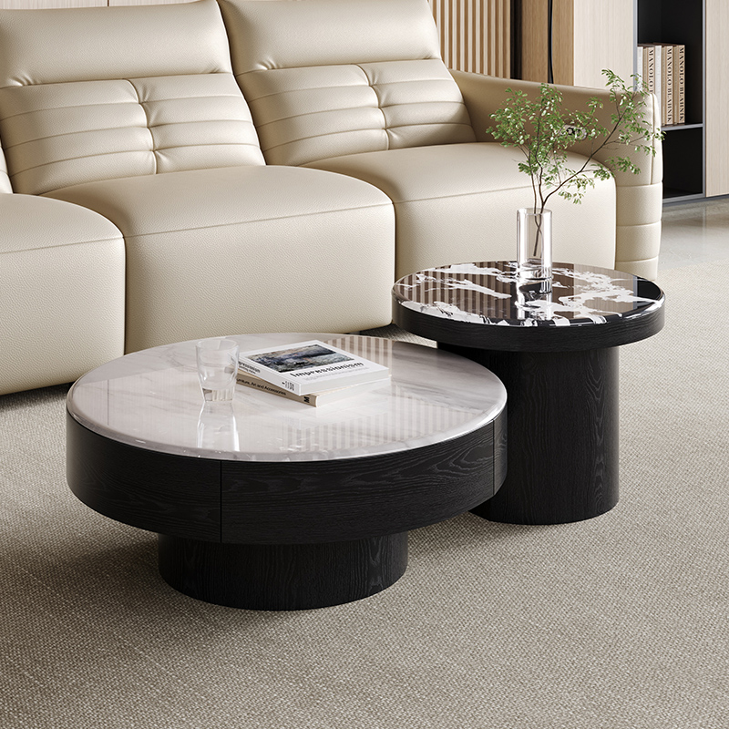 Round Wood Nesting Tables with Sintered Stone Top Set BSTJB3682A