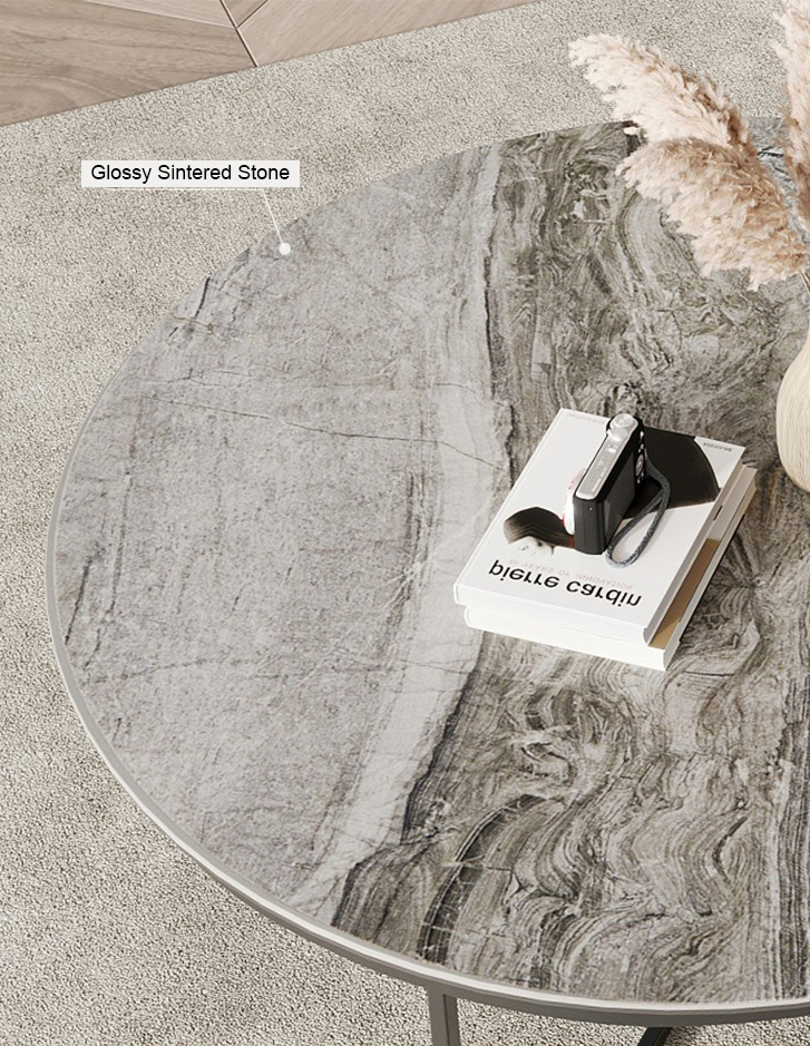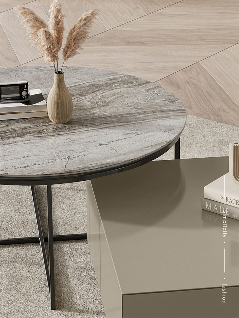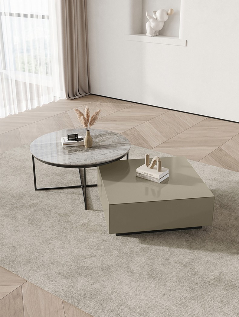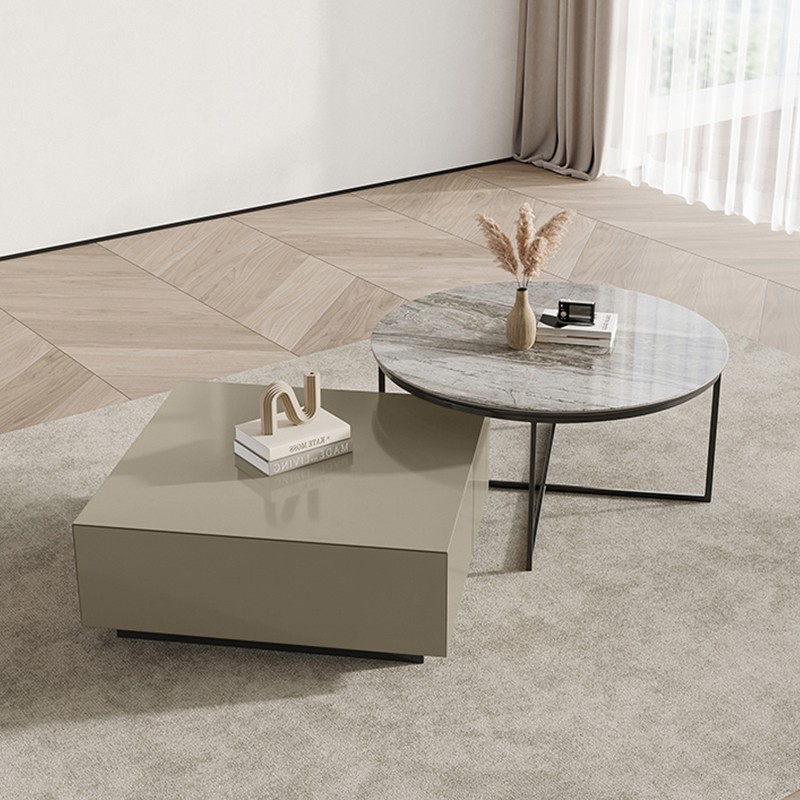 Square Wood Tops & Circle Sintered Stone Coffee Table Set BSTJB124A