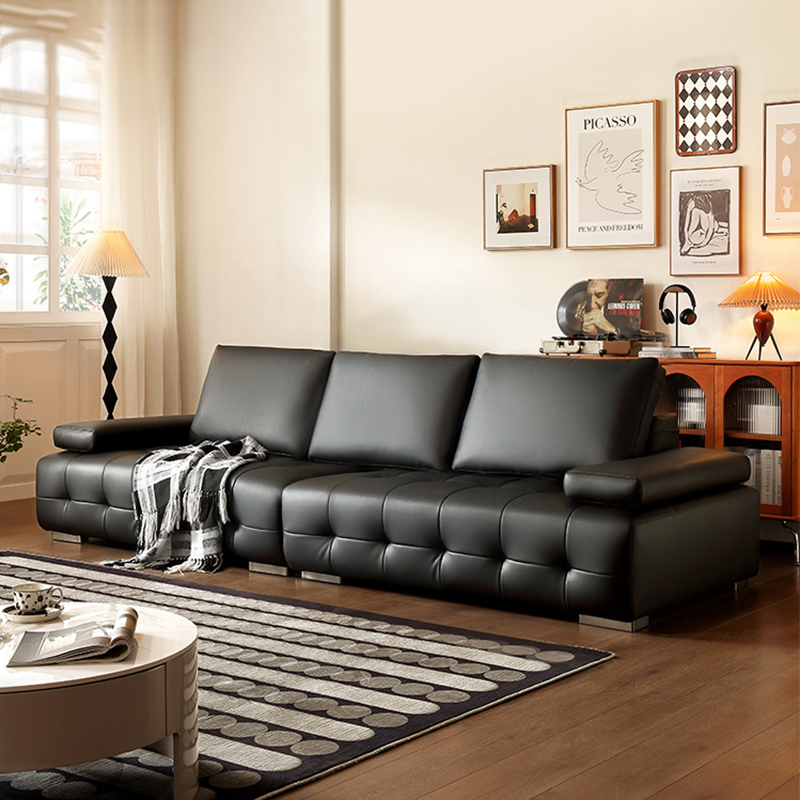 Adjustable-Arm Three-Seater Sofa in Black BSTJS3706